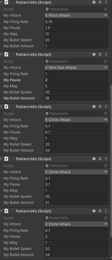 In collaboration with Sebastian Dahlskog(Check portfolio [here]), a fully customizable boss pattern script that we used to export to TGE. Allowing our level designers to pick what attack they wanted to use, how many times and the pause time in between attacks.