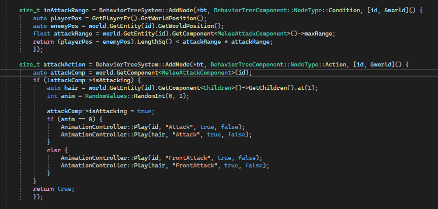 (Lambda): Checks if the player is in range.AttackAction (Lambda): Executes the attack animation.