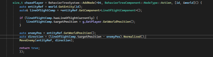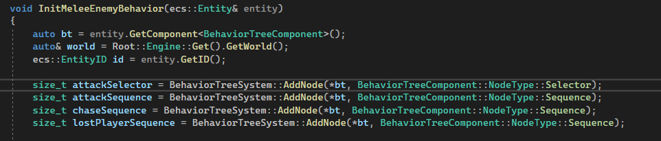 We’ll use this system to construct a tree for the enemies in Project 7, which were intentionally simple. Each enemy’s behavior is initialized in their Init()
